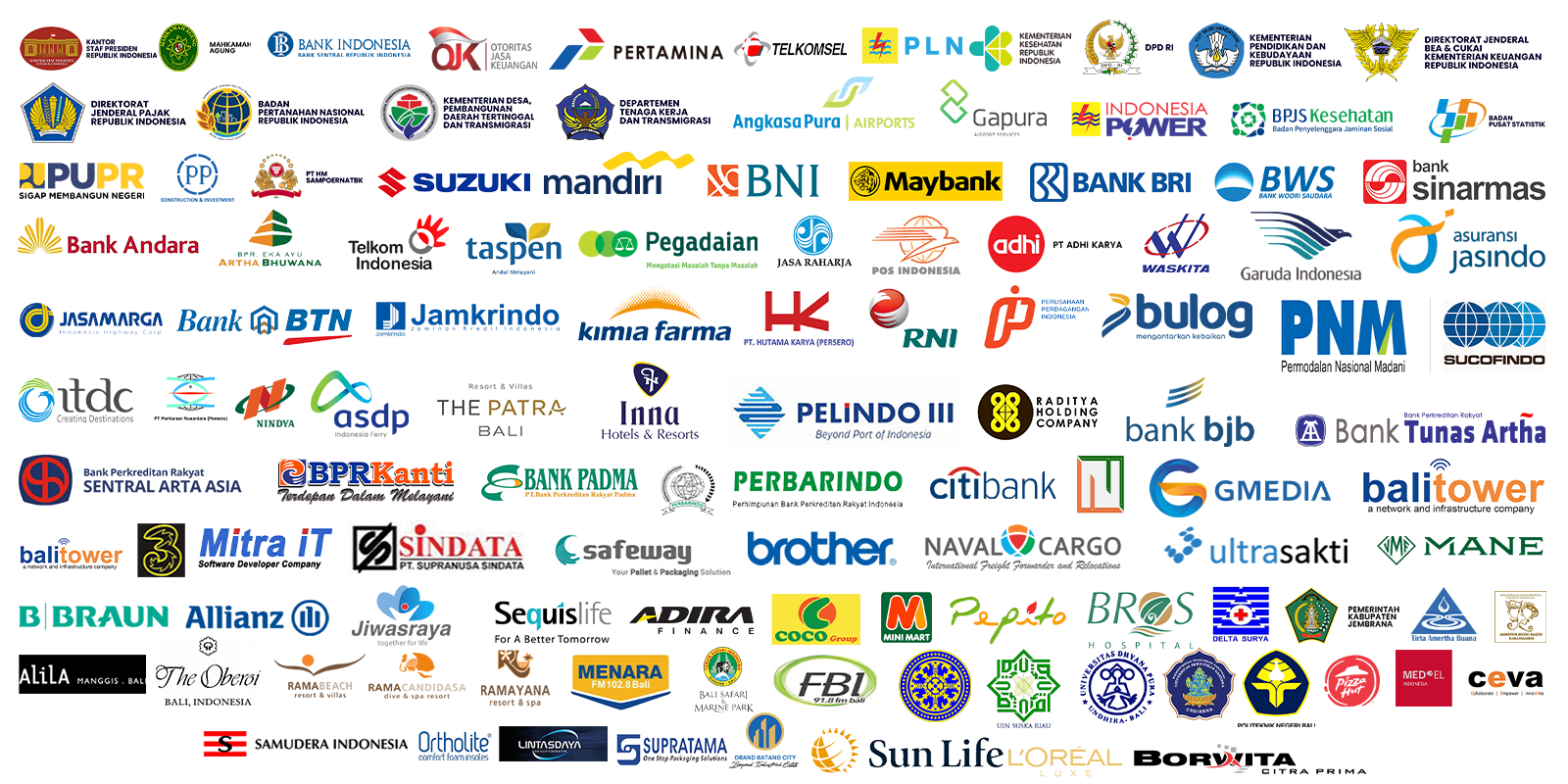 Kantor Staf Presiden, Mahkamah Agung, Belasan Kementrian, hingga puluhan BUMN dan perusahaan nasional maupun multinasional hingga ke Perbankan, Insurance, organisasi maupun perguruan tinggi, PILIH kami sebagai mitra peningkatan kualitas SDM mereka.